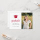 Este convite para a graduação apresenta um tema simples preto-e-branco com um boné vermelho e uma fita de ouro. Adicione uma foto e personalize o texto na frente e atrás para incluir todos os detalhes da sua festa de formatura.