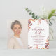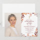 Um convite de foto de lembrança de celebração de vida personalizado com flores de outono rústicas elegantes para funeral. Criado por Thisisnotme©