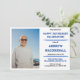 Cartão de Convite para Fotografias do Partido da Celebração de Aposentadoria, concebido com a sua fotografia favorita num dos lados e os seus detalhes de eventos no lado oposto. Este convite para modelo inclui o texto: Nome, Data e Hora, Localização e informações de contato RSVP. Para personalizar, simplesmente insira a sua imagem fotográfica no modelo, substituindo a amostra. Clique em: AJUSTADO e ajuste o local da imagem à esquerda. Em seguida, insira os detalhes do evento no modelo, substituindo o texto do exemplo. Se quiser, as cores podem ser alteradas para se adequarem à sua imagem, usando a nossa ferramenta de seleção de cores no ecrã. O inverso é preto. Este Cartão de Convite Fotográfico do Partido de Celebração de Aposentadoria vem em Impressão e Download.