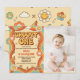 Convite Fotográfico de Festa do primeiro aniversario Arco-Íris Retroativo Groovy One