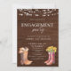 Apresentando um fundo de madeira quente, este moderno convite de festa de noivado ocidental rústico apresenta luzes de cordas, um par de suas botas com seu chapéu de cowboy, e um par de suas botas com girassóis - perfeito para um churrasco casual de festa de noivado rústica do país! A parte de trás do convite apresenta a sua fotografia de noivado favorita. Copyright Elegant Invites, todos os direitos reservados.