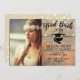 Fazendo uma festa de formando? Aproveite este convite rápido com fotos personalizáveis. Fundo do conselho de madeira, luzes de string, com todos os detalhes personalizáveis do evento. Um fundo bronzeado com manchas rústicas e confessionais.