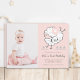 Este convite para fotos do primeiro aniversario apresenta um desenho simples, desenhado à mão, de uma imagem de cordeiro (ovelha) adornada com um clipe de cabelo de flores, bolinhas e formas geométricas. Para personalização mais avançada deste design, clique no BOTÃO "FERRAMENTA DESIGN AZUL" para alterar a fonte, o tamanho, a cor, etc.