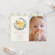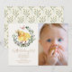 Este belo convite fotográfico de 1rua/1º aniversário da "pequena pintinho" menina apresenta um pequeno pintinho, e um par de borboletas cercadas por uma coroa verde. O verso apresenta um fundo verde de chá com padrões florais. Personalize-o para as suas necessidades. Você pode encontrar mais coelhinhos na minha loja.