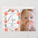 O convite para fotos de 1rua/primeiro aniversário desta garota bonita apresenta um fundo branco com pêssegos e verde em aquarela. O verso apresenta um fundo branco com faixas cor-de-rosa de pêssego. Personalize para suas necessidades. Você pode encontrar mais produtos correspondentes na minha loja.