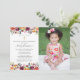 Este elegante convite de primeiro aniversario batismo apresenta flores bonito e uma foto da aniversariante ou rapaz. No lado esquerdo do convite, as flores coloridas do outono são pintadas no topo e no fundo. A borda floral enquadra o texto do convite e uma cruz de ouro. Sua foto favorita aparece no lado direito do convite. Personalize facilmente com seus detalhes de celebração e foto. O fundo branco na frente e o fundo roxo de sangria no verso podem ser editados para qualquer cor que você quiser.