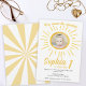 Solo de Aquarela Pequeno sol Primeiro Segundo Terceiro Convite Fotográfico, cartão com fotos. Um convite para o aniversário da garota bonita. Por favor, use uma foto quadrada para este modelo. Para mover o nome e o texto da idade, clique em: Editar usando a ferramenta design.