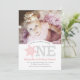Convites Foto do primeiro aniversario Glitter Silver Rosa F