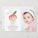 Estes bonitos convites de pêssego são perfeitos para qualquer um que comemora seu primeiro aniversário. O design apresenta uma cor d'água pintada manualmente em um simples fundo branco, com fácil personalização da foto e do texto do modelo.