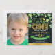 Convites Foto do primeiro aniversario Shamrock Dourado Verd