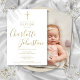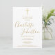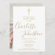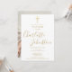 Convite batismo moderno batismo batizante com um nome de assinatura elegante de script de ouro. Personalize com seu batismo ou informação batizante em letras de ouro quico e sua foto especial no verso. Projetado por Thisnotme©