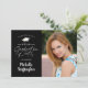 Convide convidados para uma Festa de formatura virtual online com este design de script manuscrito chic com sua foto de formando na frente e detalhes do convite na parte traseira. MUDANÇA DE COR: Observe que a cor de fundo preto na frente pode ser alterada clicando na guia PERSONALIZAR MAIS. DICA DA FOTO: Para obter resultados mais rápidos/melhores, escolha uma foto com o assunto no meio e/ou pré-plante para uma forma semelhante, conforme mostrado ANTES de carregar, e ela preencherá o espaço de fotos perfeitamente. Entre em contato com o designer se quiser que este design seja modificado ou em outro produto.