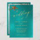 Peixe-estrela Elegante minimalista sob o mar submarino aqua termal orçamento azul de praia de verão tudo em um convite de casamento com sua foto de noivado personalizada, digitalizando o código para o site para detalhes de convidados e RSVP online, e um moderno roteiro de caligrafia "o casamento de" na moda.