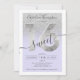 Um convite de aniversário moderno, chico e elegante de folha de cinza prateada 16, com uma moderna tipografia 16, com folha de brilho prateada, sobre um plano de fundo de lavanda roxo pastel editável e cintilação prateada brilha o gradiente ombre. Adicione sua foto atrás. Perfeito para o tema da princesa Doce 16!
