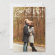 Script de Pincel Moderno Salve O Cartão com fotos De Anúncio Do Noivado De Data - Script Branco, Kraft Voltar