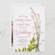 Anuncie seu dia especial com nosso elegante Convite para Casamento de Flor Selvagem, com uma delicada foto original de flores silvestres e folhas verdes esmagadas colocadas sobre um fundo branco nítido. O texto do convite é exibido lindamente em uma mistura de scripts rosa-na moda e fontes serif clássicas, adicionando um toque de sofisticação e romance. Uma característica única deste convite é a fotografia do casal no verso, enquadrada numa forma de arco graciosa, acrescentando um toque pessoal e memorável. Esta combinação de fotografia natural de flor silvestre e tipografia refinada faz deste convite uma escolha perfeita para uma celebração de casamento elegante e inspirada na natureza.