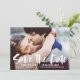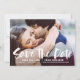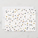 Na moda salve o anúncio de data com tipografia de estilo escovado branco com padrão de pontos de confetti cor-de-rosa, preto e cobre. uma versão de cartão postal está disponível.