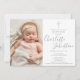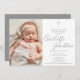 Convite batismo moderno batismo batizante com um nome elegante de assinatura de um roteiro prateado. Personalize com sua foto especial e batismo ou informação batizante em letras quentes de prata nesta elegante design. Projetado por Thisnotme©