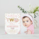 Estes convites fofos de abóbora são perfeitos para qualquer garotinha celebrando um segundo aniversário neste outono. O design apresenta uma abóbora de aquarela cor-de-rosa pintada à mão com flores, brilho dourado e fácil personalização de modelo. Itens de partes correspondentes podem ser encontrados na coleção.