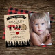 Convites Foto do segundo aniversário Rústico Xadrez Lumberj