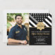 Este design apresenta uma bandeira de oficial de correções com faixas pretas e brancas, e uma faixa fina de prata também. Esta design é excelente por mostrar apreço a um oficial celebrando a formatura de um oficial de correções. Personalize ainda mais com uma imagem do novo formando de polícia.