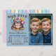 Convite de aniversário de filhotes/mapache com bolo de aniversário. Dois mapeamentos para a celebração de dois meninos gêmeos no aniversário de 5 anos. 5 velas e as cinco. Bonita e elegante. Personalize com sua própria foto pessoal. Tudo habitual.