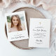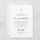 Este convite de confirmação, simples e na moda, preto e branco, apresenta uma tipografia de escrita caprichosa, de estilo vintage e uma cruz falsa de ouro. Adicione sua foto à frente. Um olhar elegante e clássico minimalista que ainda é único e contemporâneo e também neutro em termos de gênero, para um menino ou uma menina.