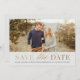 Uma foto salvou o anúncio de data com o tipo clássico e o script de caligrafia em textura de folha de alumínio dourada (para se parecer com folha de papel, mas não com folha de papel prensada) e a abertura de fotos da paisagem.