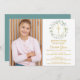 Uma terra verde decorativa e uma cruz dourada sentam-se acima dos seus detalhes especiais do primeiro evento de comunhão sagrado e foto especial nesta elegante design. O reverso apresenta uma garland e uma cruz de louros correspondentes. Projetado por Thisnotme©