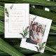 Este convite para fotos de casamento apresenta folhagem tropical verde-aquarela, folhas de palmeiras, folhas de bananas com uma estrutura retangular de ouro. É perfeito para um casamento de praia, verão ou destino. >>> Veja a coleção inteira >> https://www.zazzle.com/collections/tropical_foliage_gold_collection-119316977990783186