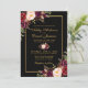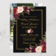 Cartão de Convite para Casamento Dourado e Preto Floral Burgundy - Cor d'água Elegante - Foto para trás