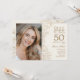Surpresa com creme de ouro floral 50º convite de aniversário com sua foto na frente do cartão. Elegante design moderno com desenhos botânicos desenhados em destaque e letra de script de tipografia. Simples trendy convida cartão perfeito para uma festa de na moda. Pode ser personalizado para qualquer idade. Impressos convites Zazzle ou modelo de impressão digital instantânea para download.