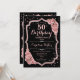 Elegante convite de 50 anos florais com sua foto no fundo do cartão. Design preto e cor-de-vidro com ouro rosa de brilho sujo. Funcionalidades cor-de-rosa pincelado, tipo de letra de script e confetti. Perfeito para uma festa de comemoração de na moda adulto. Personalize com seus próprios detalhes. Pode ser personalizado para qualquer idade! Impressos convites Zazzle ou modelo de impressão digital instantânea para download.