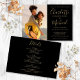 Apresentando seus nomes especiais de fotos e estilo de assinatura, este elegante convite de casamento preto e dourado pode ser personalizado com suas informações especiais sobre o dia do casamento, incluindo seu RSVP, acomodações e detalhes adicionais. Projetado por Thisnotme©