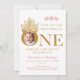 Convite Fotográfico, rosa e Dourado, para primeiro aniversario da Princesa - Cartão de Celebração Real Comemora o primeiro aniversário da sua pequena princesa com este belo e Dourado Convite Fotográfico da Princesa Rosa! Apresentando um elegante design da coroa, cor-de-rosa suave e sotaques dourados, e um espaço para sua foto favorita, este convite personalizado é perfeito para festas de aniversário de temas reais. Personalize com seus detalhes de eventos e crie uma manutenção mágica que seus convidados irão tesourar!