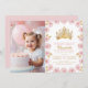 Convite Fotográfico da Princesa, cor-de-rosa e Dourada - Festa de Fairytale da Coroa Convide a comemorar o primeiro aniversário da sua pequena princesa em estilo real com este Convite Fotográfico da Princesa Rosa e Dourada! Apresentando um elegante design da coroa, sotaques cor-de-rosa macio e dourados, e um espaço para mostrar sua foto favorita, este convite para conto de fadas é perfeito para uma primeira festa de aniversário mágica. Personalize com seus detalhes de eventos e foto para criar um belo manejo e uma apresentação inesquecível para sua celebração!