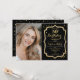 Elegante 50º convite de aniversário com sua foto. Design preto de vidro moderno com ouro brilhante falso. Possui fonte de script e confetti. Perfeito para uma festa de comemoração de na moda adulto. Personalize com seus próprios detalhes. Pode ser personalizado para qualquer idade! Impressos convites Zazzle ou modelo de impressão digital instantânea para download.