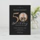 Foto Dourada Elegante 50º Convite de Aniversário. Celebre um aniversário marcante com nosso convite para o Elegante Simples Preto e Dourado, perfeito para adicionar um toque de sofisticação ao seu dia especial. Este design personalizável apresenta um fundo preto elegante adormecido com sotaques dourados elegantes, criando um eterno e um aspecto elegante. Personalize-o ainda mais com uma foto personalizada para tornar seu convite realmente único e memorável. Ideal para quem aprecia uma estética refinada, esse convite dá o tom para uma celebração que será apreciada por anos.