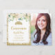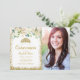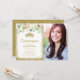 Convites Foto Dourada Floral Branca, Tiara Quinceanera