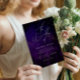 Convites Foto Dourada mágica de cor d'água roxa escura
