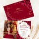 Convite para celebração de Quinceanera vermelha, dourada e branca com fotografia. Recursos, fontes de script, borboletas douradas, rosas de aquarela e tiara. Perfeito para uma elegante celebração de glam estilo princesa. Personalize com seus próprios detalhes. Impressos convites Zazzle ou modelo de impressão digital instantânea para download.