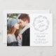 Esta elegante foto salva o cartão de data apresenta uma coroa azul empoeirada coroa coroa ao redor das palavras "Salvar a Data" em um roteiro clássico azul empoeirado. Substitua facilmente a imagem de amostra por uma foto de vocês dois. Personalize o texto restante com seus nomes e data e local do casamento. O verso é azul sólido empoeirado.