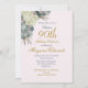Um Convite De Aniversário Floral De 90. A idade pode ser alterada para qualquer idade, não apenas para 90 anos. Um bonito fundo de flores brancas e folhagem azul. As informações são facilmente alteradas para suas próprias informações personalizadas com a palavra surpresa que pode ser removida, a idade alterada e a data de nascimento removida, se você quiser. Mude a foto para a sua.
