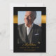 Este elegante e elegante design apresenta fundo preto na frente e atrás com sotaques de ouro falsos e a foto do seu amado atrás. Basta completar a modelo com fotos atrás, seus detalhes da "Celebração da Vida", em frente e atrás, embaixo da foto. Todo o texto pode ser editado conforme desejado e a foto deve ser mudada para você. Design por Holiday Hearts Design (direitos reservados). Foto marcadora de modelo, cortesia de Pexels.