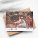 Obtenha entusiasmo por seu casamento enviando uma foto moderna e chic Horizontal White Salve o Cartão de Data com sua fotografia e caligrafia moderna. Veja nossa coleção de convites para fotos para mais estilos ou orientações de fotos.