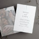 Um belo convite de casamento baseado em tipografia minimalista, com seus nomes em letras clássicas, junto com modernas letras de sotaque escritas à mão. Personalize com seus detalhes de casamento embaixo. A nossa cinza de Cinza faz uma declaração clássica com letras negras suaves em um fundo branco nítido. Adicione uma foto vertical de hemorragia de cheio à parte traseira, com 50% de opaco mais tarde no topo para uma aparência sem som e desbotada.