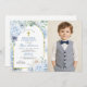 Convites Foto Floral Azul de Primeira Comunhão Dusty
