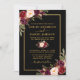 O Convite para Casamento Floral, Preto e Dourado da Moderna Elegante Watercolor Burgundy inclui rosas burguentos, rosas cor-de-rosa e verde botânico. Foto de volta.
