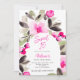 Anuncie seu próximo aniversário de 16 doces com nossos convites pintados à mão, com flores rosas brilhantes e bonito e encantadoras e folhas verdes em aquarela com um legal roteiro moderno de escovas. O moderno roteiro de pincel adiciona um toque de elegância a esses convites únicos que são perfeitos para qualquer celebração teatral., perfeito para o exterior e a festa de aniversário de jardim. Com um quadro florescente.