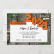 Convite à graduação rustica em laranja vivo e em folhas de madeira e latido Camouflage em 2023. Anúncio de duas fotos para formandos de 2018. Personalize com duas fotos e bastante espaço no retorno para obter informações sobre o convite.